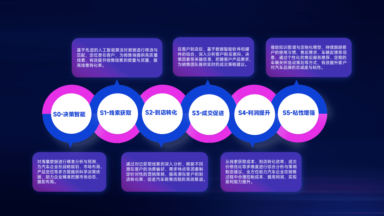通过拓宽潜在客户来源、、、优化线索分配并提高到店转化率,,,,以增强销售效率。。。同时,,,,利用线索数据不断优化分析模型,,,,有效提升转化率,,,扩大营销影响力。。。